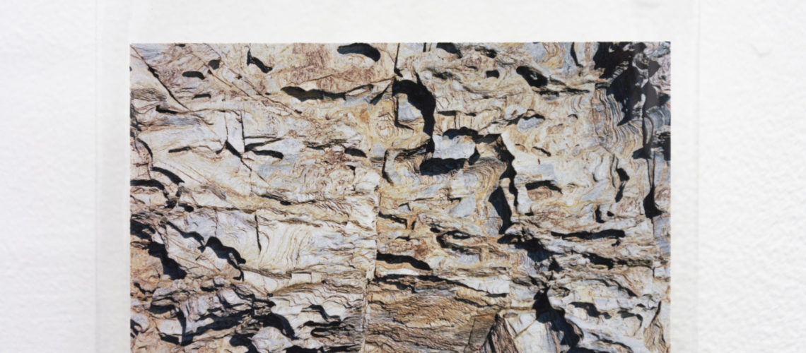 Le travail photographique d’Adrien Chevrot se donne à voir comme un récit d’expériences, explorant les fondements de notre rapport à la représentation et à la conception des images pour mieux jouer avec leurs codes. L’artiste présente au Point Commun une insolite collection de vues minérales, photographiées au cours de ces quatre dernières années passées à parcourir des territoires côtiers en tous genres. Les éclats, les plis et les boursouflures de la pierre sont habilement mis en lumière. Il agit en observateur patient à l’approche de cette matière sculptée par des lames de mer, depuis si longtemps que l’on pourrait dire toujours. De son premier corpus d’images naissent des œuvres qui migrent vers la vidéo et coexistent avec l’écriture. Photographies altérées par des bugs numériques, lignes claires et lueurs obscures… Ici et là se glissent nuages, horizons, corps et nature morte, fenêtres ouvertes vers des espaces qui gravitent à la frontière de l’intime et du commun sans que l’on puisse clairement en identifier la source.